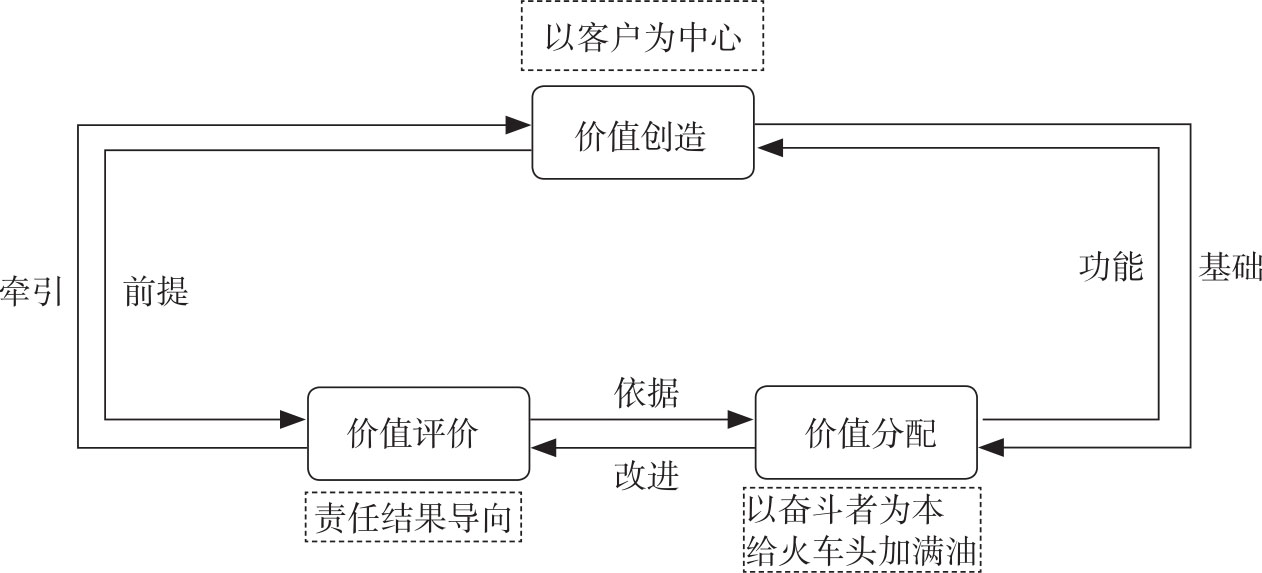 企业的价值创造管理循环通过全力为客户创造价值、科学的评价价值、合理的分配价值,使真正做出贡献的人得到合理的回报,从而让企业具有持续的活力。
