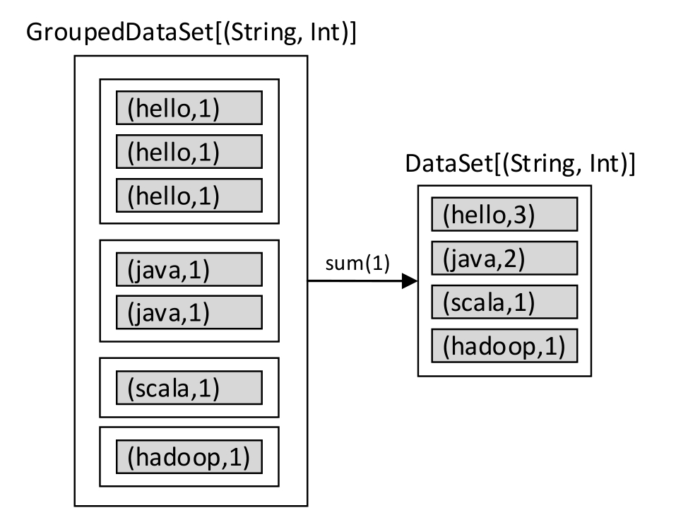 val resultDataSet: DataSet[(String, Int)] = groupedDataSet.sum(1)