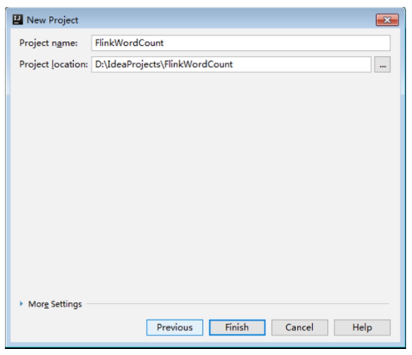 在弹出的窗口中填写项目名称FlinkWordCount,然后单击Finish按钮,如图1-27所示。
