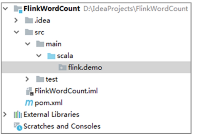 至此,基于Maven管理的Flink项目就搭建完成了。项目默认结构如图1-28所示。