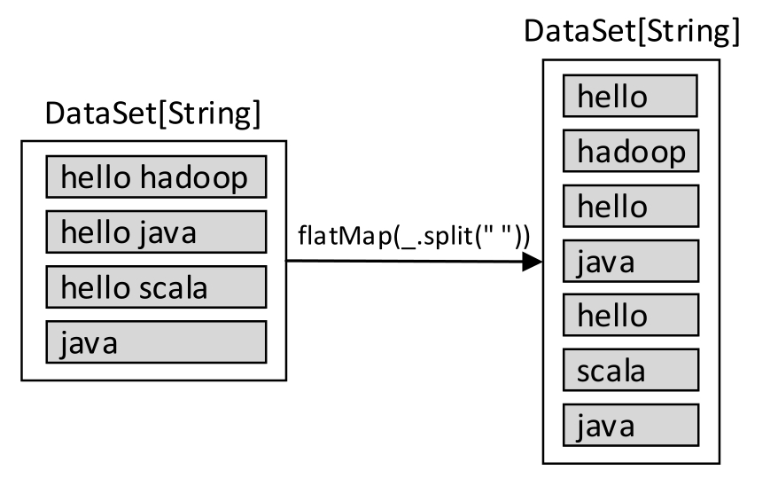 val wordDataSet: DataSet[String] = inputDataSet.flatMap(_.split(" "))