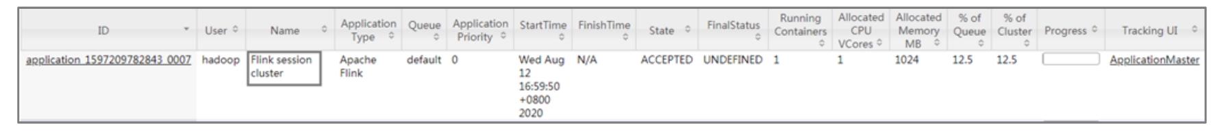 图3-34 新启动的Flink YARN Session集群的运行状态