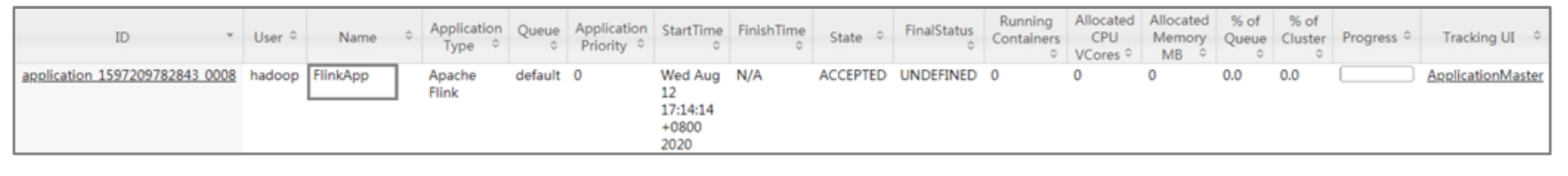 例如,启动一个Flink YARN Session集群,在YARN的WebUI中查看当前Flink YARN Session集群的运行状态,如图3-33所示。
