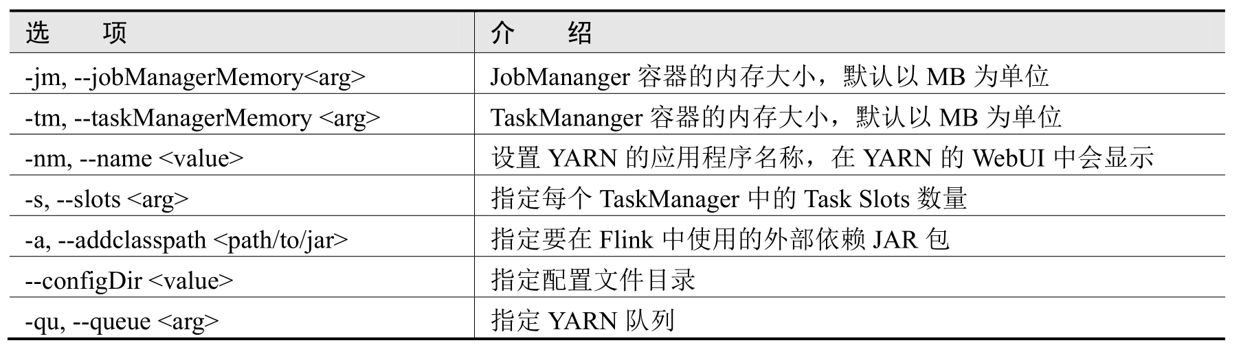 表3-9 Flink On YARN模式启动Flink Shell常用选项介绍