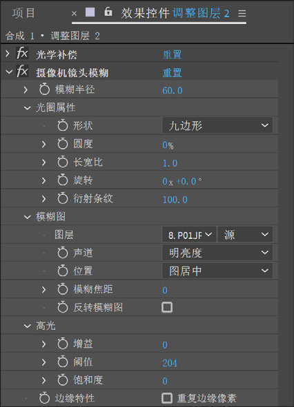 图5-17 设置“摄像机镜头模糊”参数
