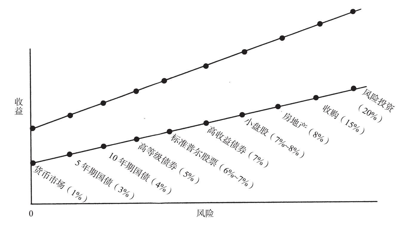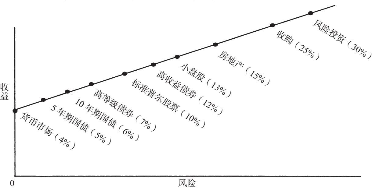 “如果我能从股票上赚到10%的收益,那么我需要15%的收益率才能接受缺乏流动性和确定性的房地产。如果是进行收购,那么收益率要达到25%……只有30%的收益率才能诱使我去进行风险投资,因为风险投资的成功率非常低。”