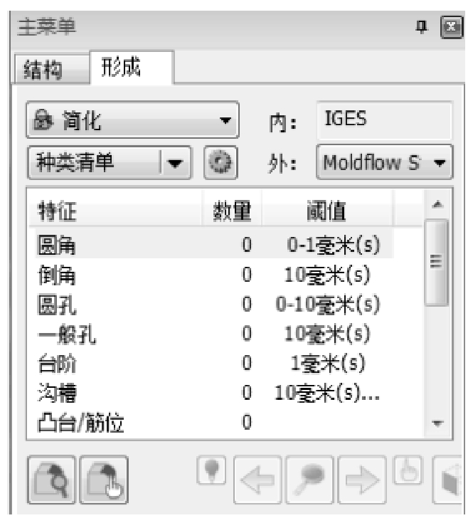同以上步骤,可以根据需要设置“倒角”“圆孔”“台阶”等特征的阈值,并进行相应的简化。