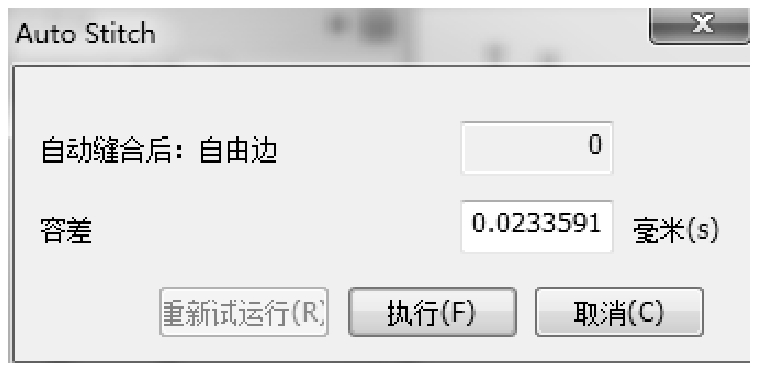 【提示】 如果用默认的容差修复不完全(所有统计的错误数据必须为0),则可尝试把容差调大再次缝合,最大不超过产品允许的公差最大值,也可以继续通过“修复”(⑤)按钮或手工操作完成修复。