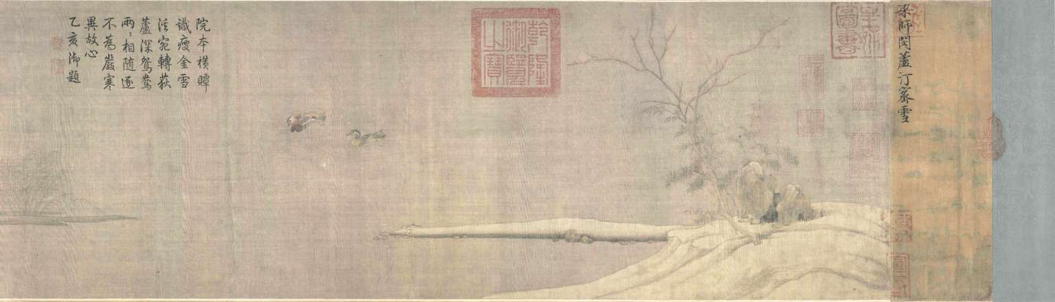 ● 《芦汀密雪图》,绢本设色,26.5cm×145.6cm,梁师闵,北宋,北京故宫博物院藏