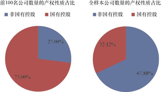 图2-14 2019年价值创造额前100名及全样本上市公司数量的产权性质分布情况