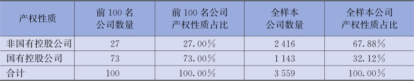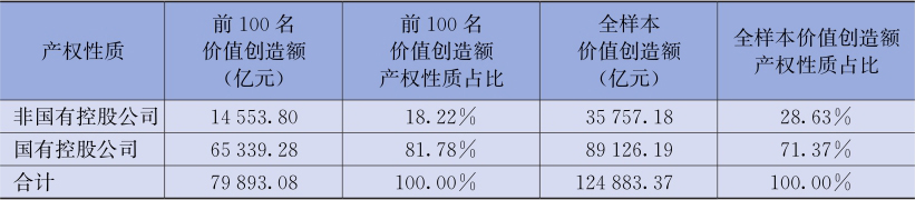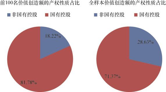 图2-15 2019年价值创造额前100名及全样本上市公司价值创造额的产权性质分布情况