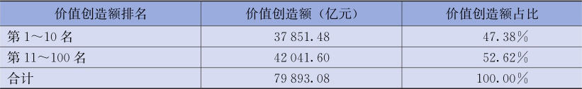 表2-8 2019年前100名上市公司价值创造额分布情况