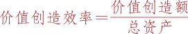 价值创造效率是指在单个企业或企业总体在特定会计期间内利用单位资产新创造的价值,反映了经济资源的投入产出效率,其计算公式设计如下: