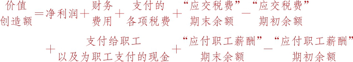 具体来讲,会计宏观价值指数包括价值创造额和价值创造效率两个方面,其中,价值创造效率指数的编制以价值创造额为基础。价值创造额是指企业在特定会计期间内为股东、政府、员工、债权人等分配主体创造的价值之和,其计算公式设计如下: