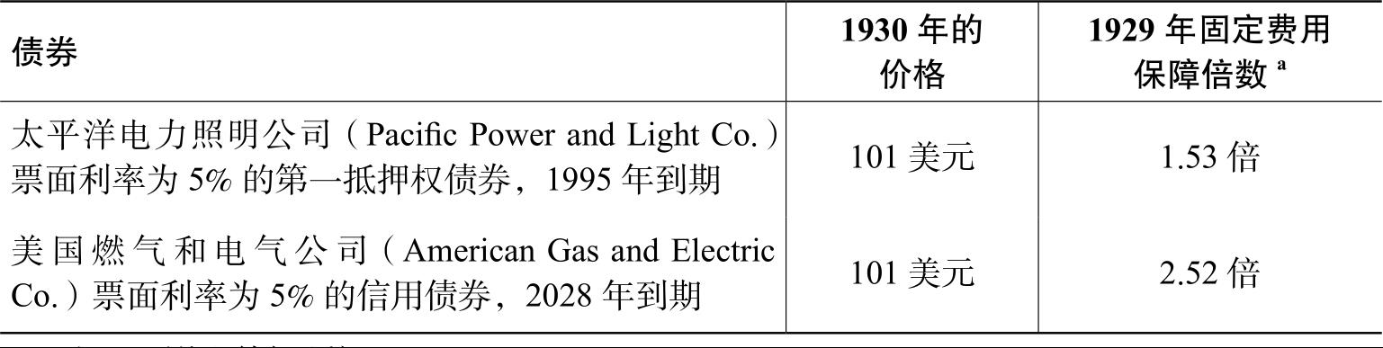 美国燃气和电气公司的总费用保障倍数明显高于太平洋电力照明公司。当两只债券价格相差无几时,前者的次级抵押权债券比后者的第一抵押权债券更具有吸引力