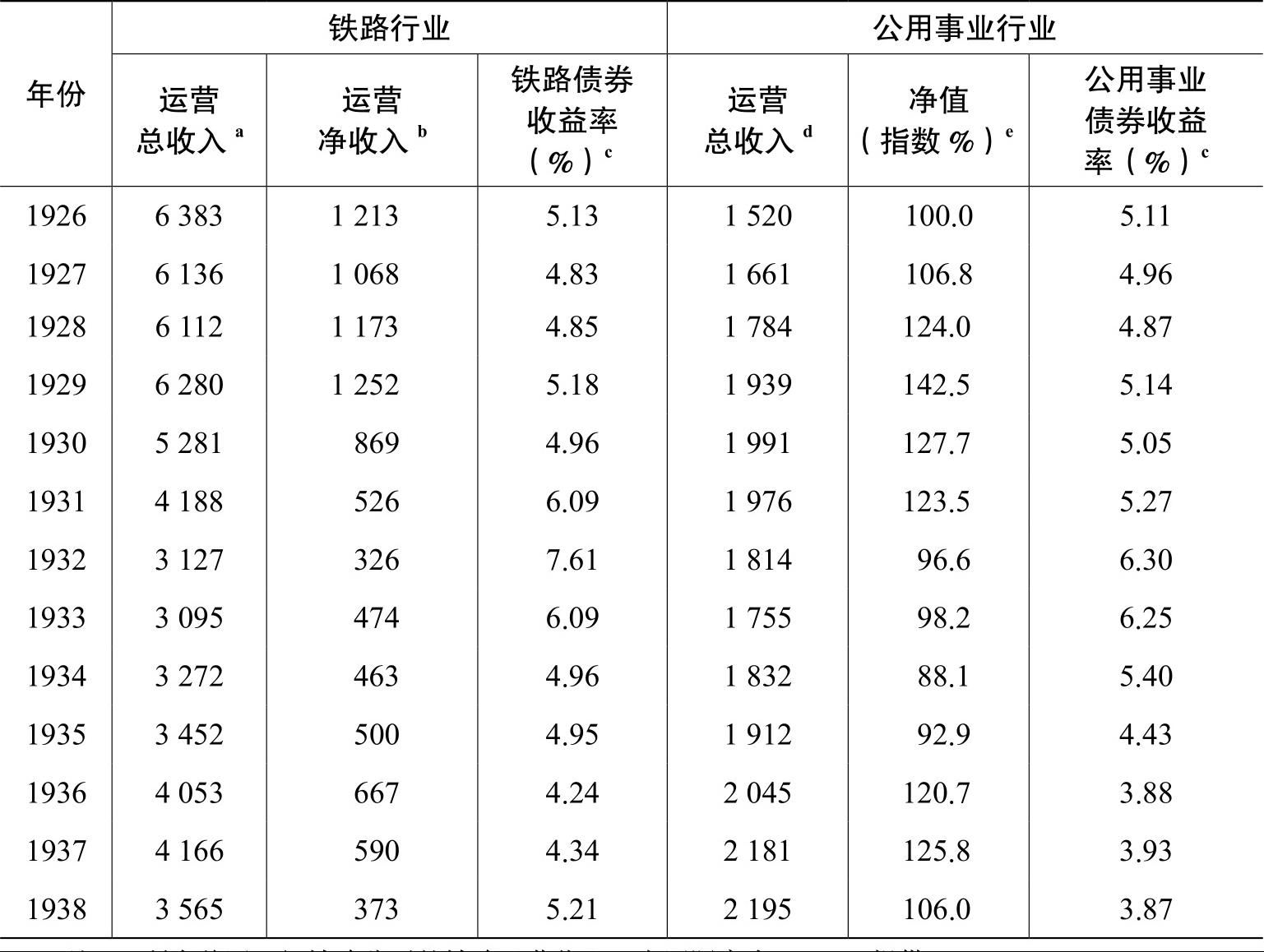 表7-1 铁路和公用事业行业在大萧条时期的表现 (单位:百万美元)