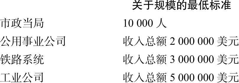 对这些标准的反对意见 。对收入总额的最低要求似乎并不是从普遍意义上的债券投资的视角提出的。不同的人口水平标准对覆盖全国的投资者来说意义也不大。无论根据自有铁路里程还是营业收入,对铁路公司进行选择的测试都显得混乱又多余。10 000 000美元营运收入的要求本身就过高了。举例来说,按照这一标准,班戈–阿鲁斯图克铁路公司(Bangor and Aroostook Railway)将被排除在外,但其是少数在1930—1933年大萧条期间,运营情况同之前一样良好的铁路公司之一。与天然气和电力公司的1 000 000美元相比,电话公司5 000 000美元的收入总额标准也是没有根据的。三州电话电报公司(Tri-State Telephone and Telegraph Company)1927年之前发行的债券将被这一规定排除,但是该债券在当时(和此后)拥有毋庸置疑的价值。但我们认为,虽然不可避免地存在主观判断,下面有关规模的最低标准仍是符合安全投资实际的: