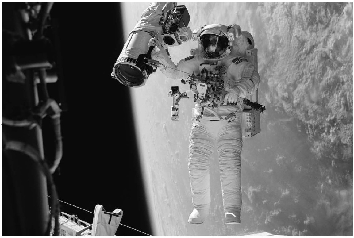 图1.9 太空微重力环境下处于悬浮状态的航天员