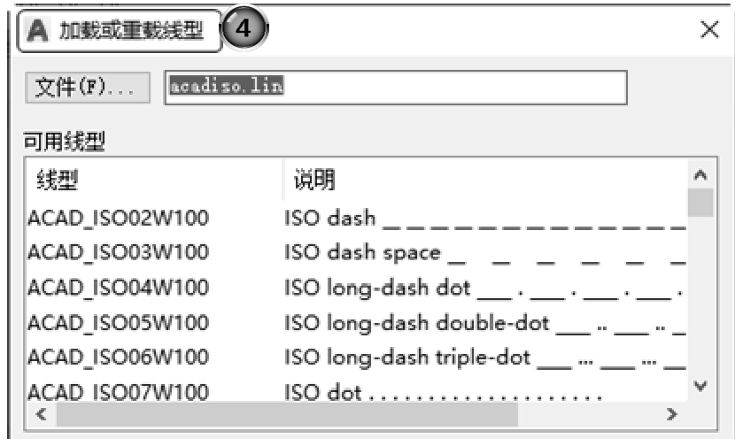 打开“加载或重载线型”对话框,如图2-36所示,可以看到AutoCAD还提供了许多其他的线型,用鼠标选择所需线型,单击“确定”按钮,即可把该线型加载到“已加载的线型”列表框中,可以按住Ctrl键选择几种线型同时加载。