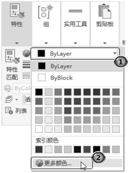 也可以在“特性”工具栏上的“颜色”“线型”“线宽”和“打印样式”下拉列表中选择需要的参数值。如果