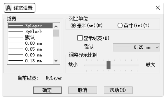 执行上述命令后,系统弹出“线宽设置”对话框,如图2-39所示。