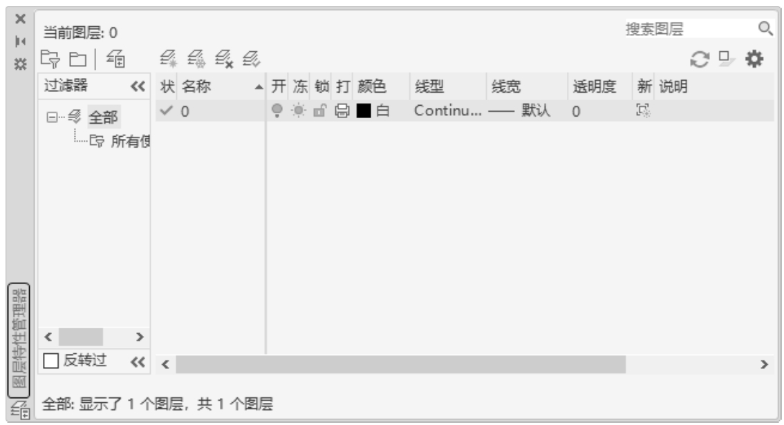 按钮,建立新图层,默认的图层名为“图层1”。可以根据绘图需要,更改图层名,例如改为实体层、中心线层或标准层等。
