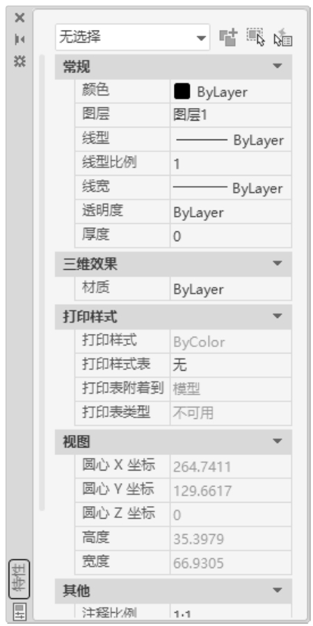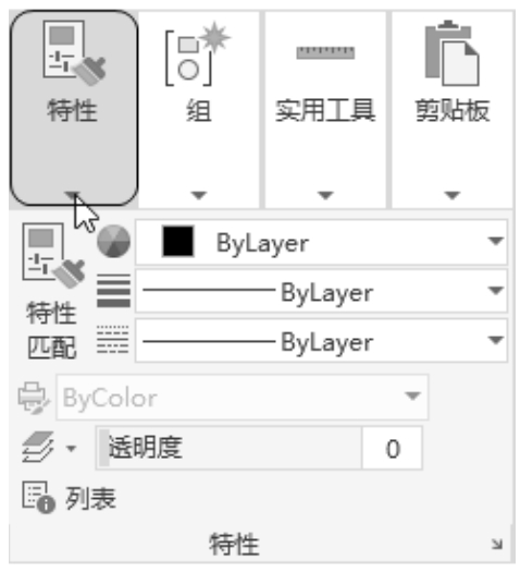 执行上述命令后,系统弹出“特性”工具板,如图2-43所示。在其中可以方便地设置或修改图层、颜色、线型、线宽等属性。