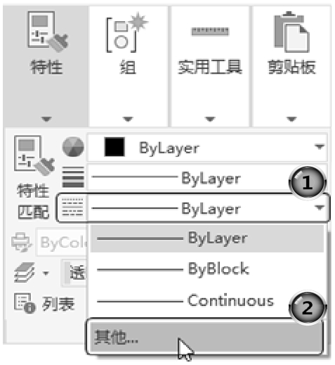 选择“其他”选项,如图2-42所示,系统就会打开“线型管理器”对话框,如图2-38所示。