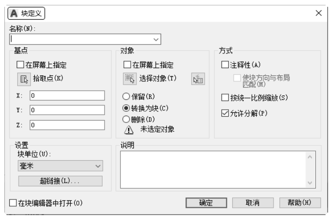 命令行:BLOCK(快捷命令:B)。