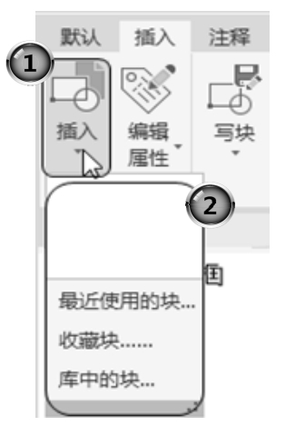 功能区:单击“默认”选项卡“块”面板中的“插入”下拉按钮,或者单击“插入”选项卡“块”面板中的