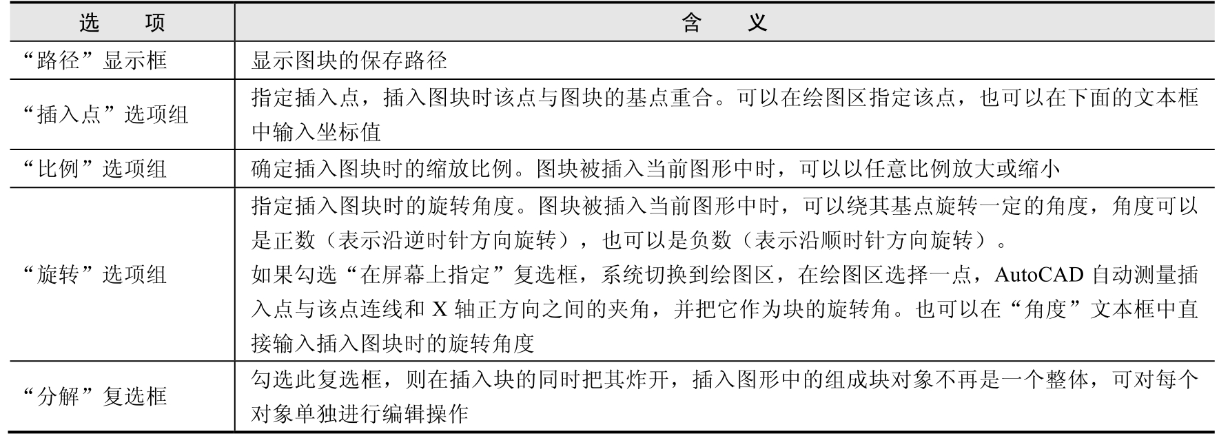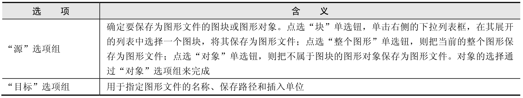 表2-3 “写块”对话框选项含义