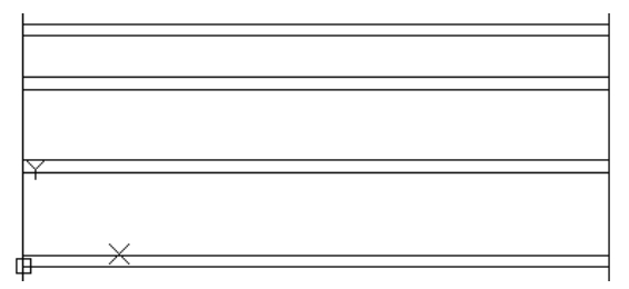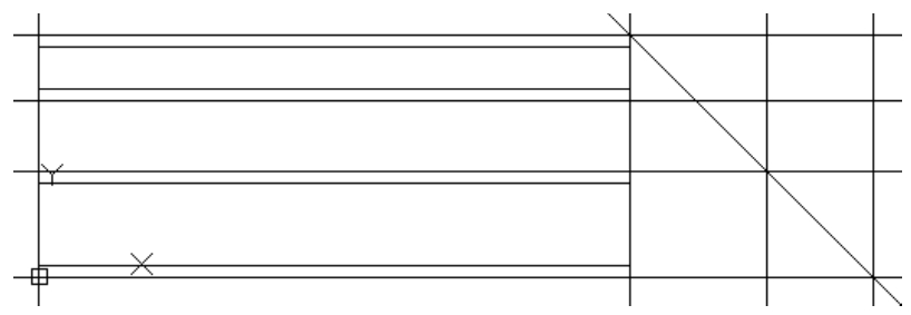 重复“构造线”命令绘制角度为-45°的构造线,重复“构造线”命令绘制过斜线与第三条水平线的交点和斜线与第四条水平线的交点的垂直构造线。结果如图3-53所示。