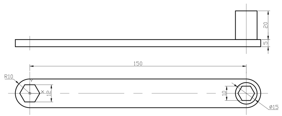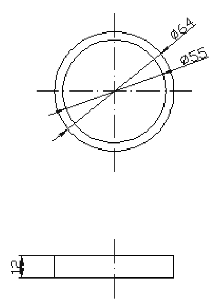 先利用“直线”命令绘制中心线,然后利用“圆”命令绘制主视图,最后利用“矩形”命令命令绘制俯视图。可以通过绘制构造线或坐标值来保持三视图之间“长对正,高平齐,宽相等”的对应尺寸关系。
