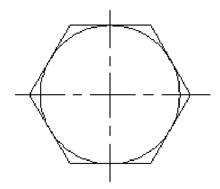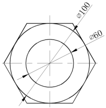 本例绘制螺母,如图3-57所示。由于本例中有两种不同的线型,所以需要设置图层来管理线型。整个图形都是由圆和多边形构成,所以需要用到CIRCLE命令和POLYGON命令。