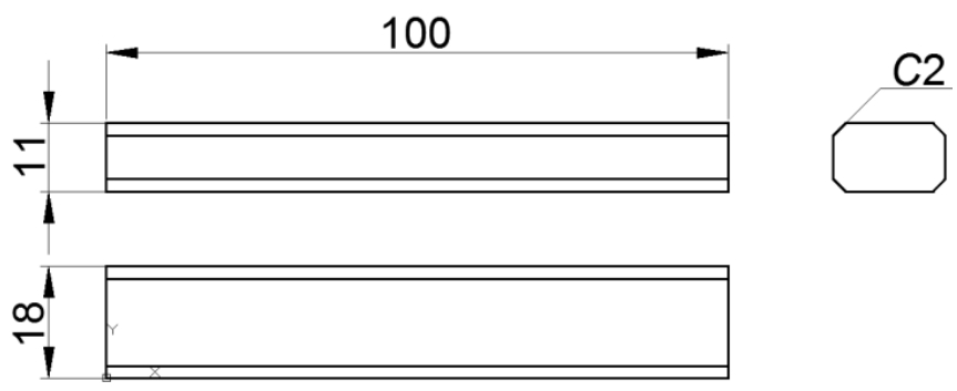 ,绘制主视图的两条棱线,一条棱线端点的坐标值为(0,32)和(@100,0),另一条棱线端点的坐标值为(0,39)和(@100,0),结果如图3-50所示。