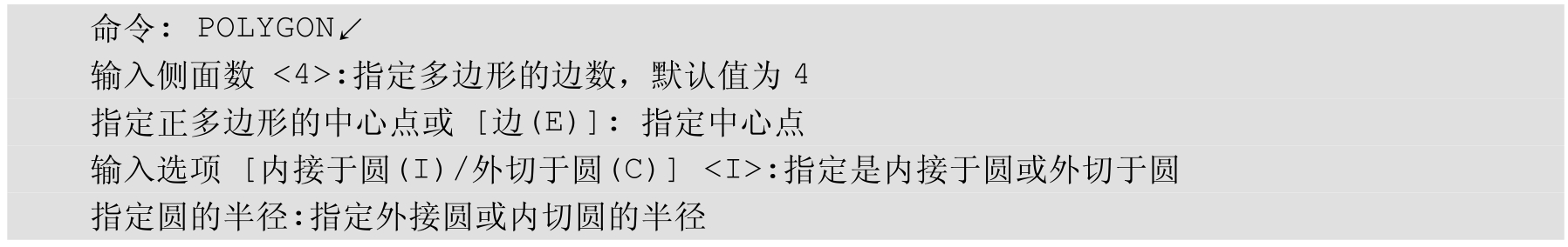 功能区:单击“默认”选项卡“绘图”面板中的“多边形”按钮