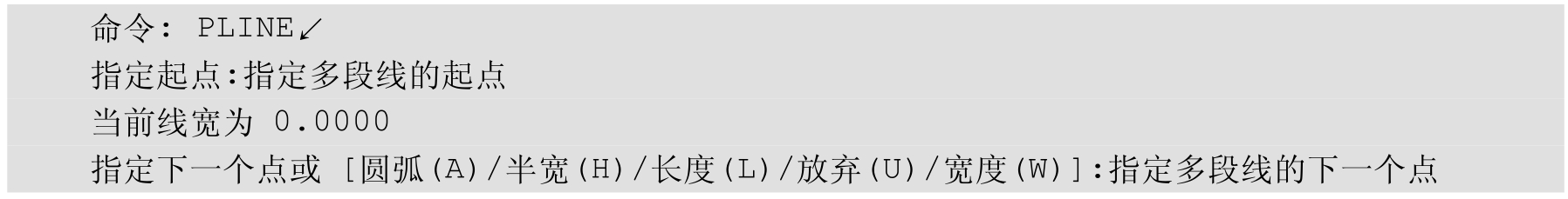 多段线主要由连续且不同宽度的线段或圆弧组成,如果在上述提示中选择“圆弧(A)”选项,则命令行提示如下。