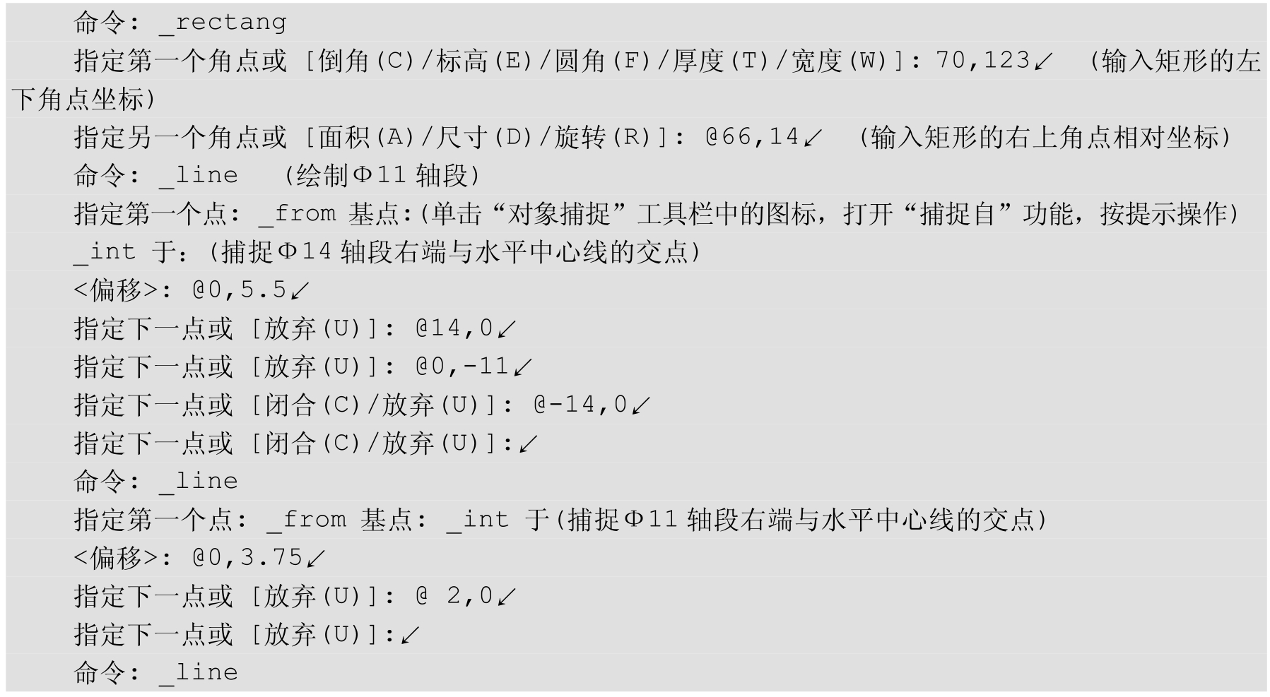 本实例绘制的轴,主要由直线、圆及圆弧组成,因此,可以用直线命令LINE、多段线命令PLINE、圆命令CIRCLE及圆弧命令ARC结合对象捕捉功能来完成绘制,如图3-62所示。