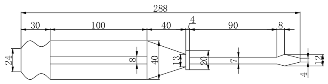 本例绘制螺丝刀,如图3-67所示。本例主要利用直线命令、样条曲线命令绘制旋具端部,利用矩形命令、偏移命令等绘制把手,最后利用多段线命令绘制旋杆。