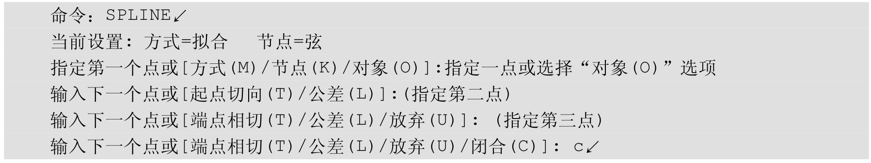 命令行:SPLINE(快捷命令:SPL)。