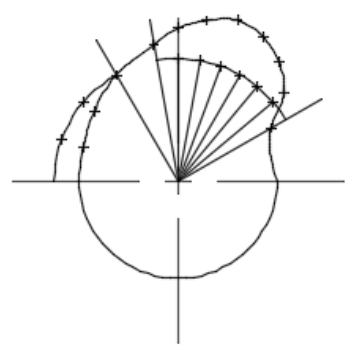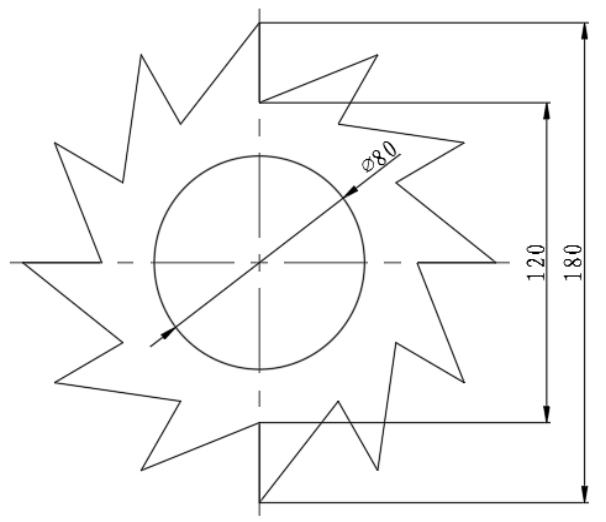 本实例绘制的凸轮轮廓如图3-77所示。凸轮轮廓由不规则的曲线组成。为了准确地绘制凸轮轮廓曲线,需要用到样条曲线,并且要利用点的等分来控制样条曲线的范围。