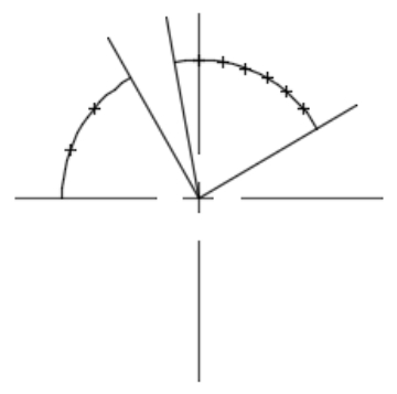 ,绘制直线,端点坐标分别是{(0,0),(@40<30)},{(0,0),(@40<100)}和{(0,0),(@40<120)}。所绘制的图形如图3-78所示。