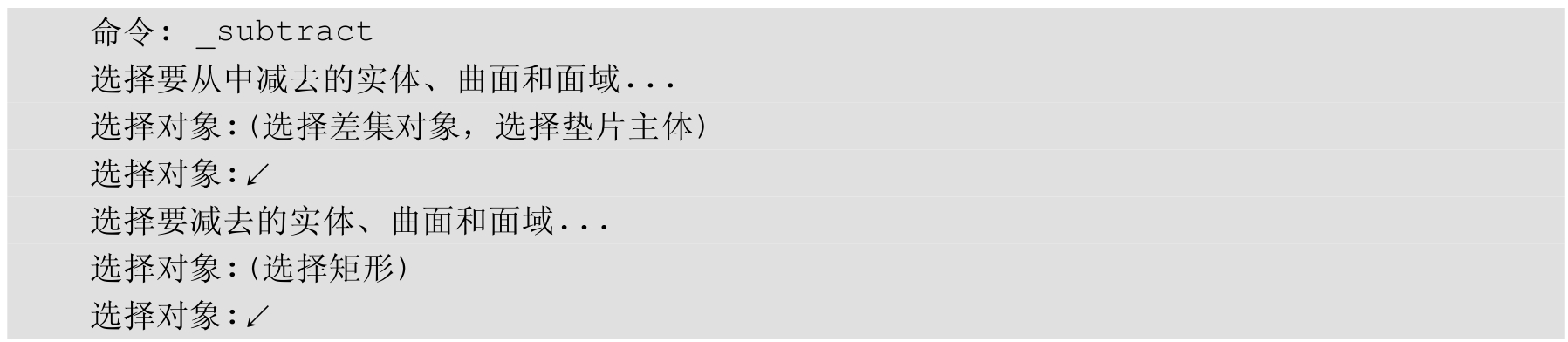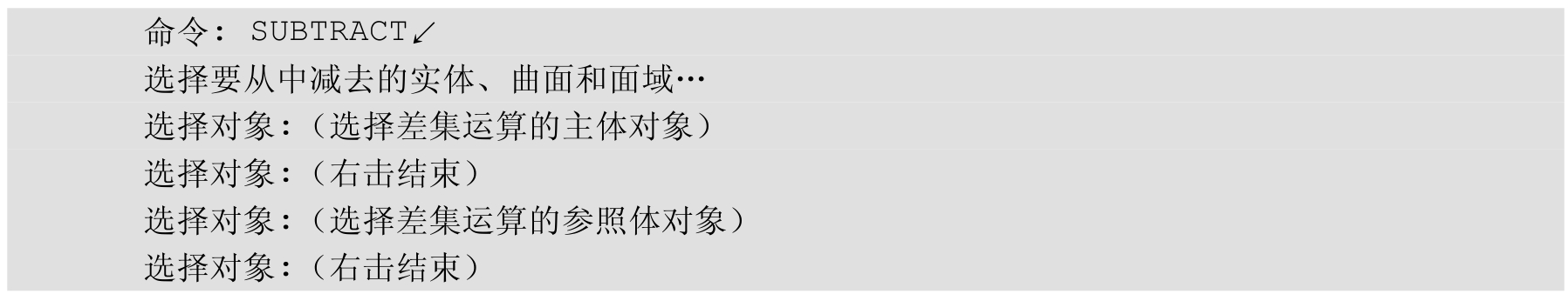 (7)单击“三维工具”选项卡“实体编辑”面板中的“差集”按钮