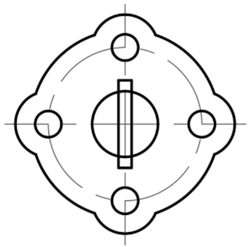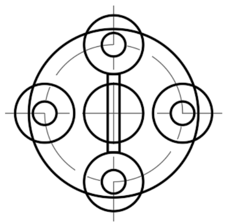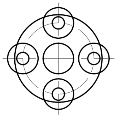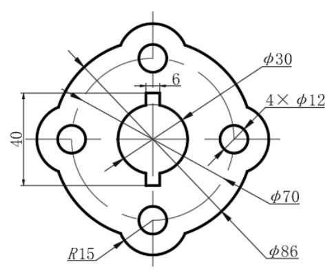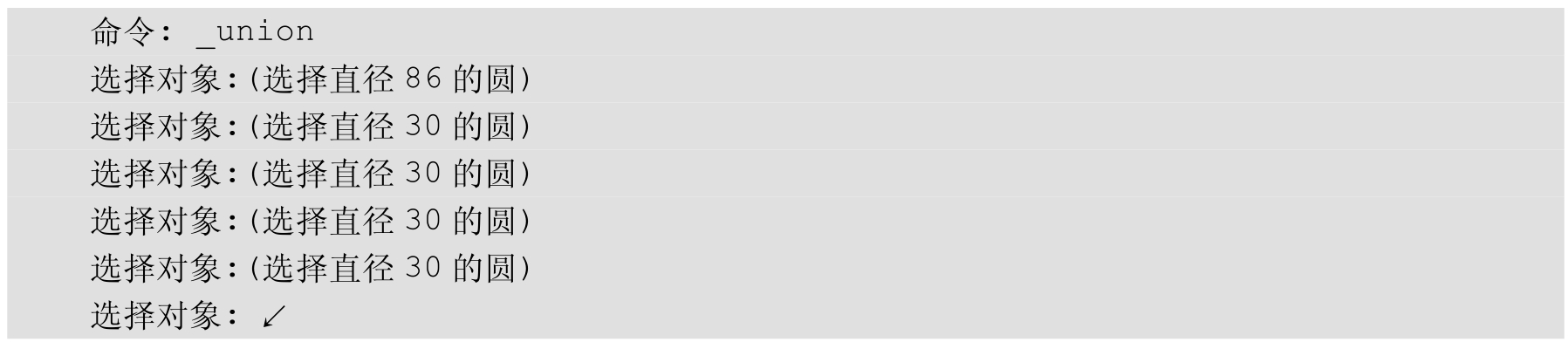 ,将直径86的圆与直径30的四个圆进行并集处理,命令行提示与操作如下。