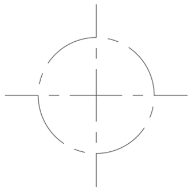 ,绘制直线。端点坐标分别为{(-55,0),(55,0)}和{(0,-55),(0,55)};单击“默认”选项卡“绘图”面板中的“圆”按钮