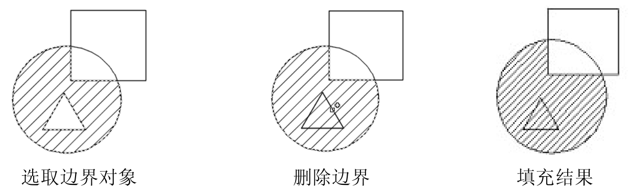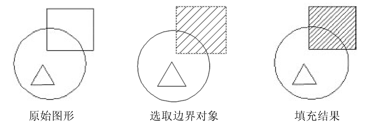 ②选择边界对象:指定基于选定对象的图案填充边界。使用该选项时,不会自动检测内部对象,必须选择选定边界内的对象,以按照当前孤岛检测样式填充这些对象(见图3-96)。