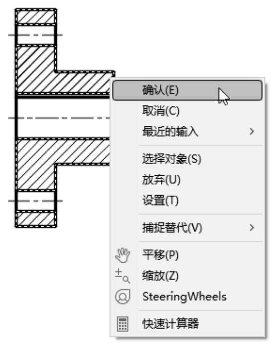 ,在断面处拾取一点,右击,弹出右键快捷菜单,选择“确认”命令,如图3-106所示。确认退出。填充效果如图3-100所示。
