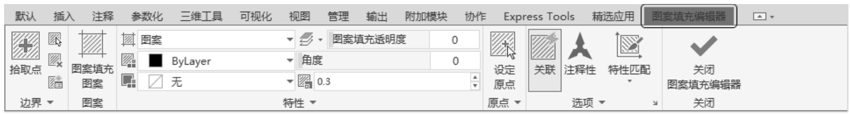 功能区:单击“默认”选项卡“修改”面板中的“编辑图案填充”按钮