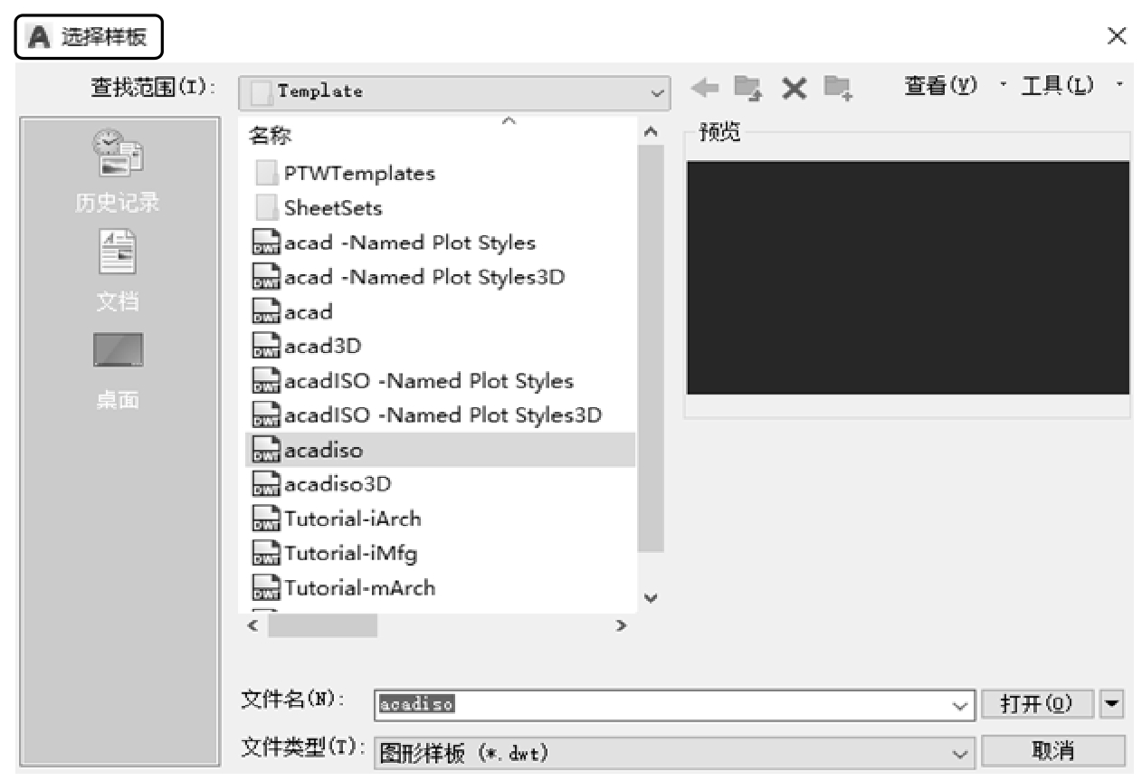 执行上述命令后,系统打开如图2-21所示的“选择样板”对话框。