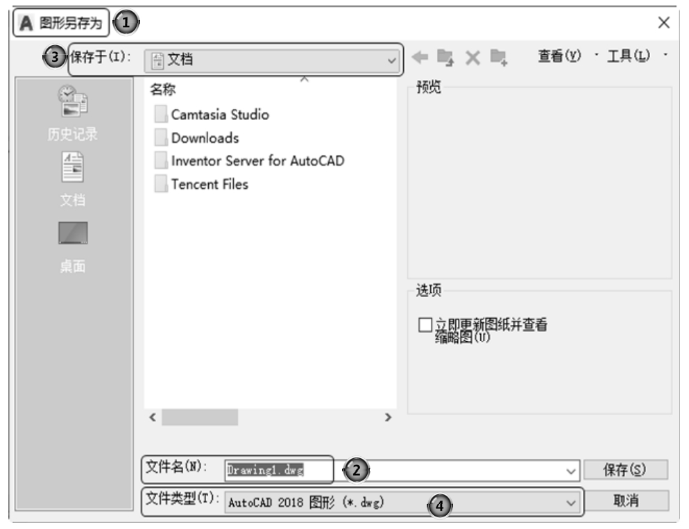 执行上述命令后,若文件已命名,则系统自动保存文件,若文件未命名(即为默认名drawing1.dwg),